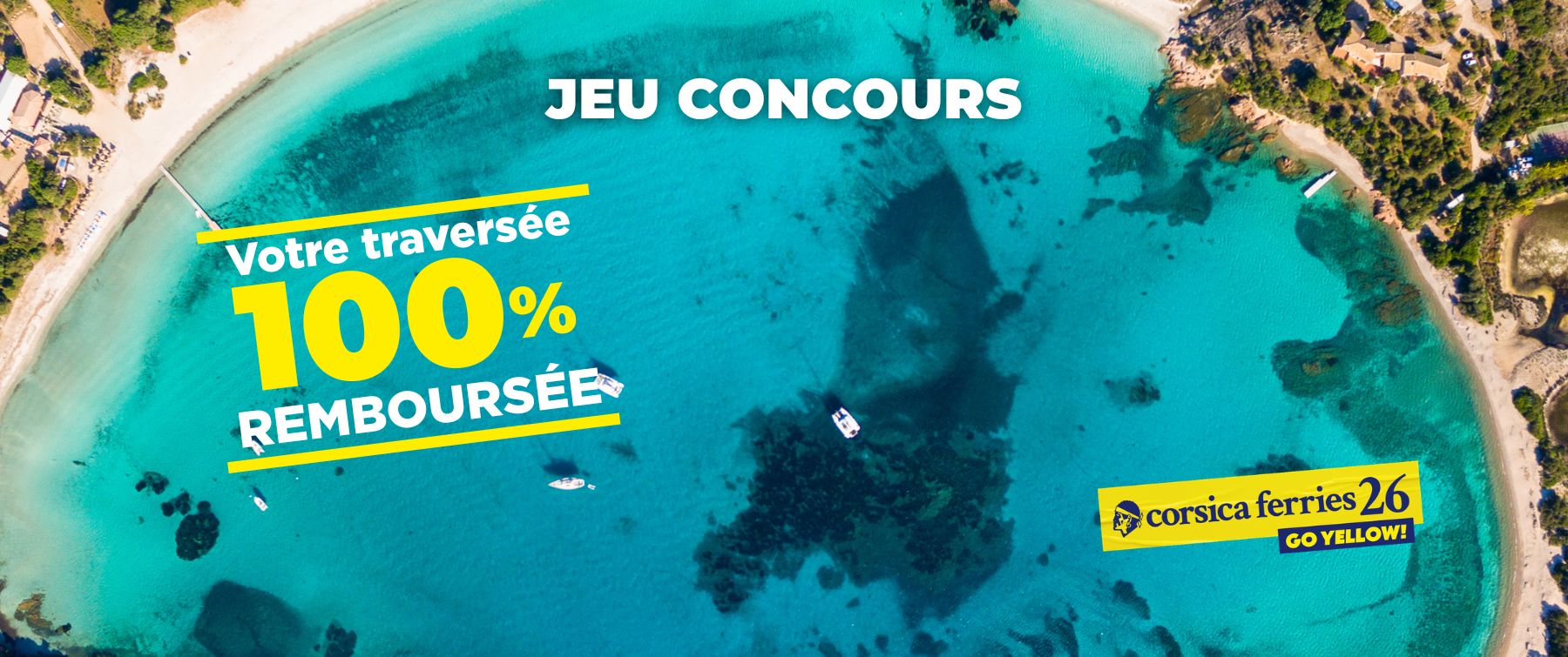 CORSICA FERRIES SAS, dont le siège social est à 20296 BASTIA CEDEX, Le Palais de la mer, Avenue Pascal LOTA – CS 60275 – inscrite au RCS de BASTIA sous le numéro : 496 320 151 , organise un jeu-concours avec obligation d’achat intitulé « votre billet 100%remboursé ».